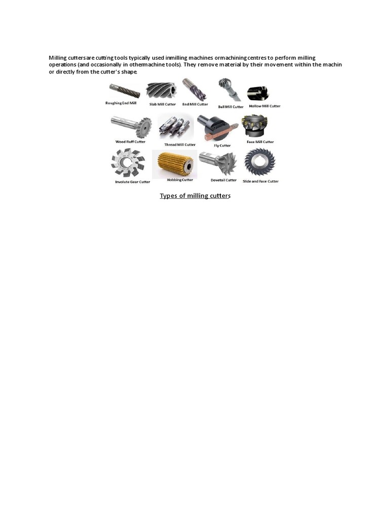 Types of Milling Cutters Fly cutters Angle Formed Concave Convex Gear Types Of Milling Cutter Pdf Web learn how to visually identify the types of cutting tools most commonly used in cnc milling operations. Web form milling is the operation of producing an irregular contour by using form cutters. Web firstly, categorized by use, milling cutters can be divided into three major types: Web book pdf available. The milling cutter is the tool used in the. Types Of Milling Cutter Pdf.